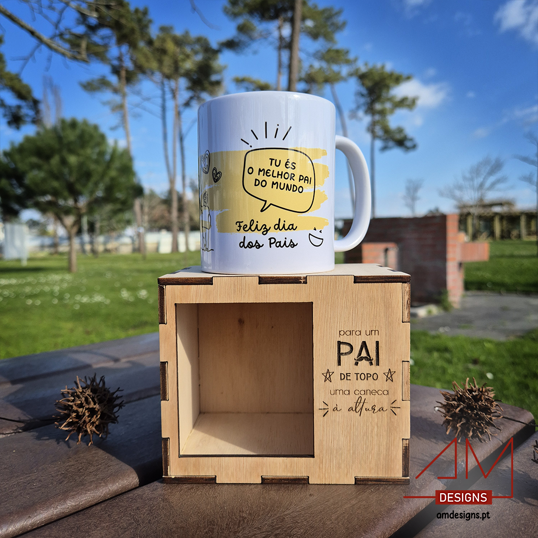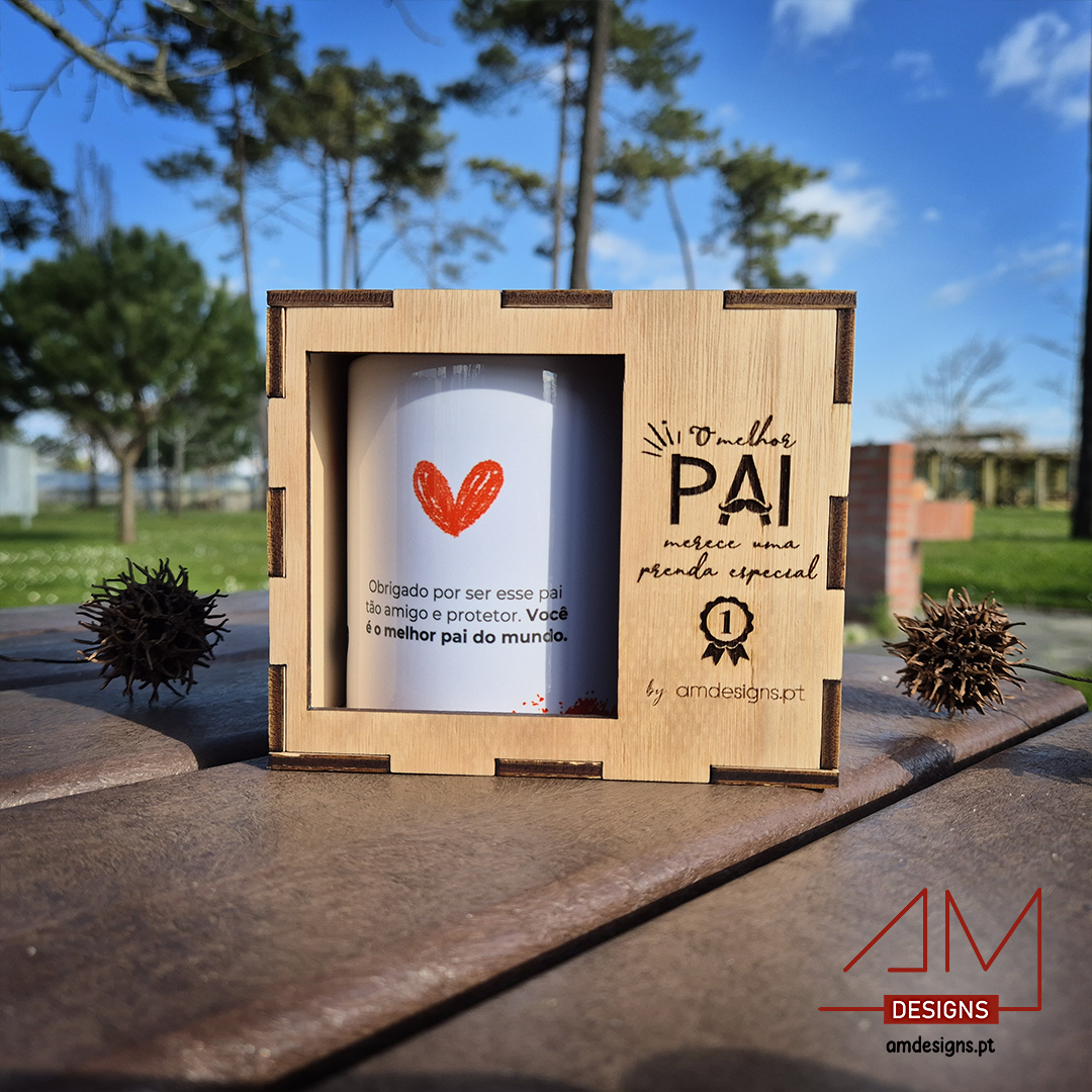 Um presente especial para um pai incrível! Esta caneca de cerâmica, gravada a quente, é a escolha perfeita para demonstrar carinho e reconhecimento. Com um design intemporal e mensagens emocionantes, vem acompanhada de uma elegante caixa de madeira, tornando-a ainda mais especial para oferecer.