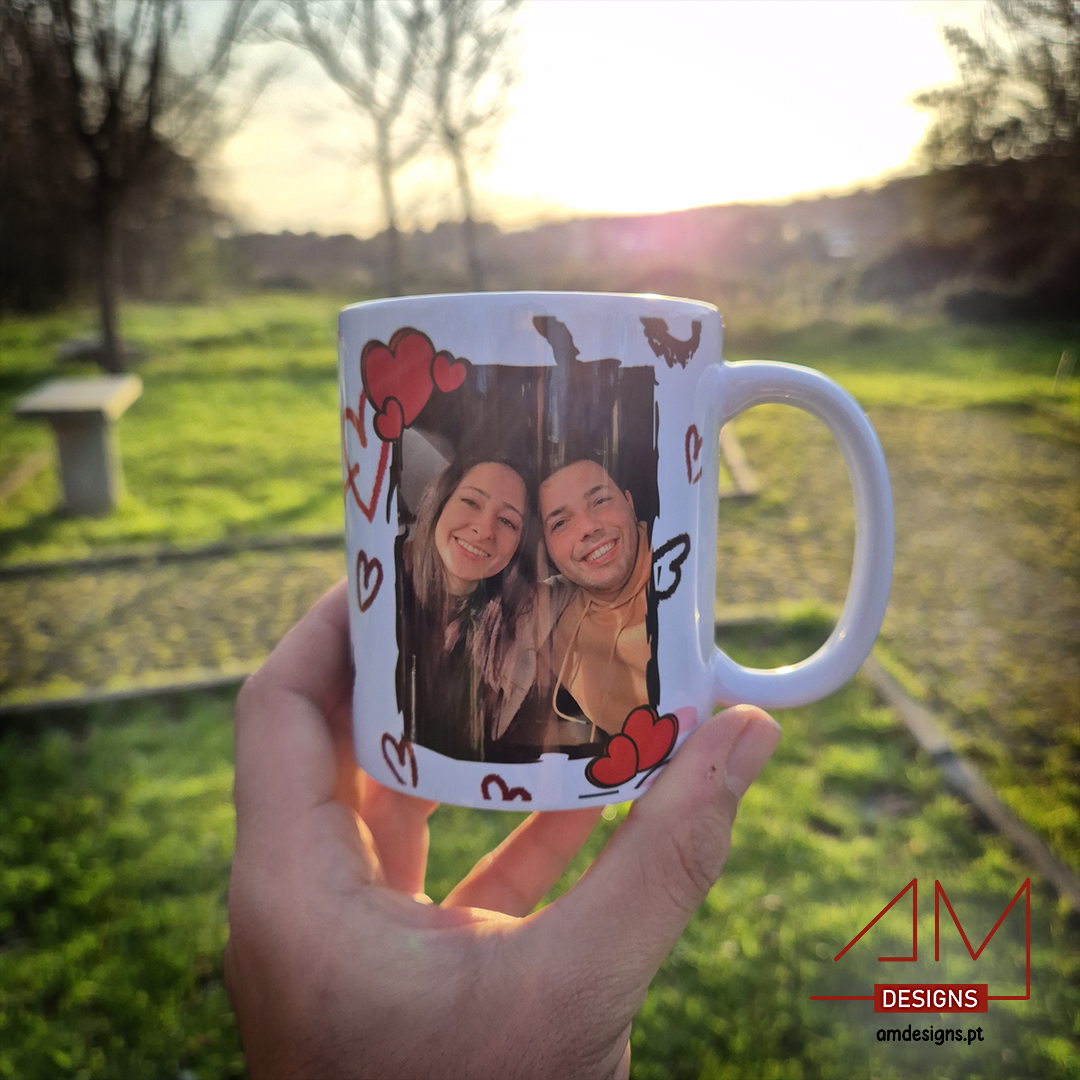 Um presente simples de escolher, mas com impacto: caneca personalizada com a vossa foto e a tua mensagem.