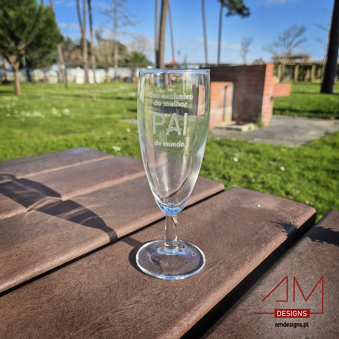 Um brinde ao melhor pai de sempre! Este elegante copo de vidro tipo flute é a forma perfeita de celebrar momentos especiais ao lado de quem mais importa. Com a gravação "O Melhor Pai do Mundo", torna-se um presente inesquecível e cheio de significado.