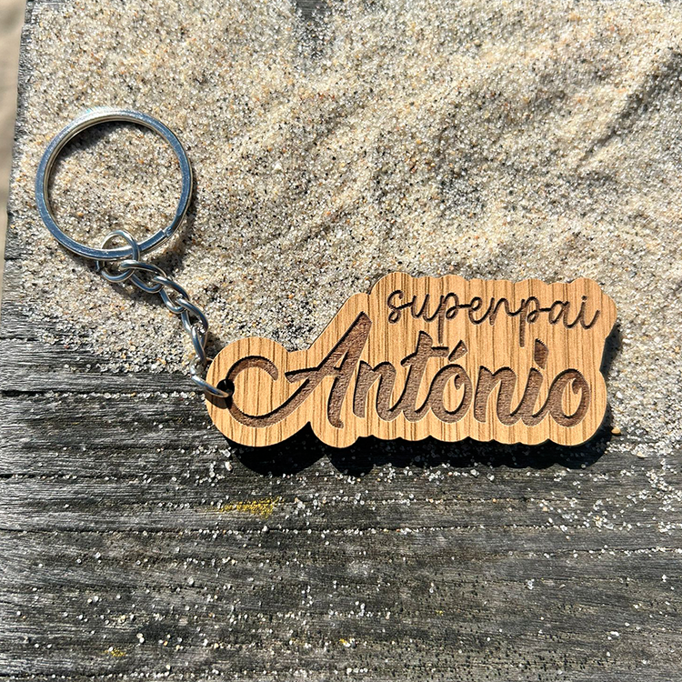 - Porta-chaves Personalizado: Em madeira de alta qualidade, gravado com Super Pai e o nome, para que as chaves de casa tenham sempre um significado especial.