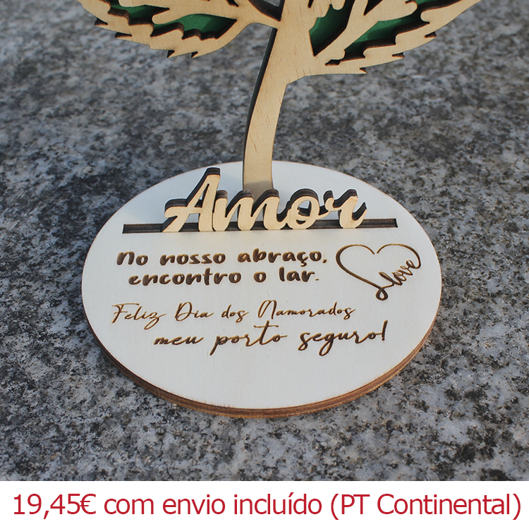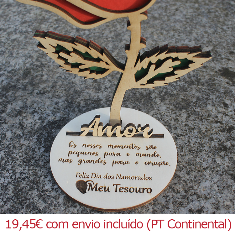 Um presente simples de escolher, mas com impacto: uma rosa em madeira que fica para sempre — com uma mensagem na base.