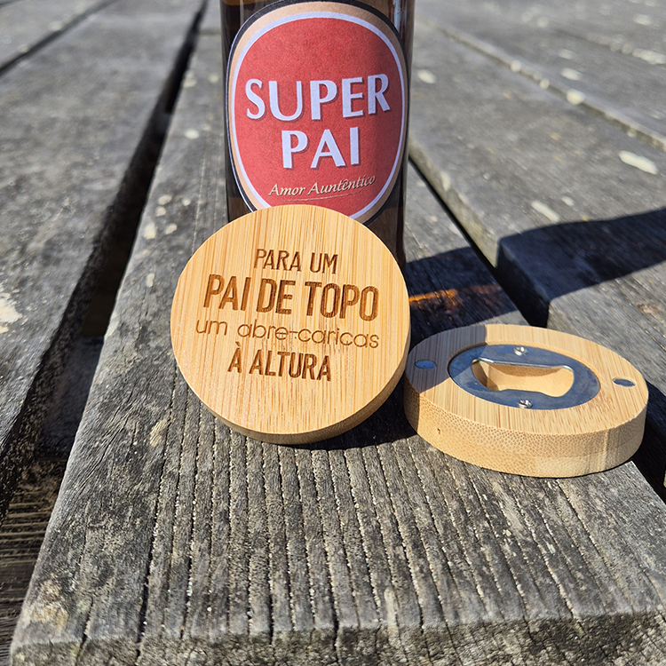 Porque os momentos de descontração com o seu herói merecem um brinde especial! Este saca-caricas em madeira é o acessório indispensável para o Pai que aprecia uma boa bebida e boa companhia. Um presente prático e personalizado que transforma cada abertura de garrafa num gesto de carinho e reconhecimento.