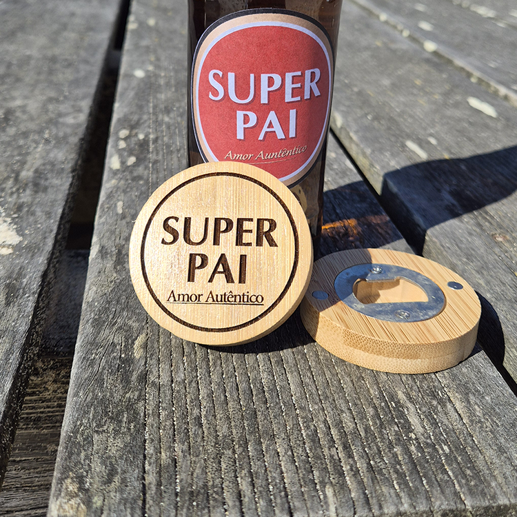 Gravação a Laser: Mensagens marcantes ("Super Pai", "Pai de Topo" ou "Amo-te Pai") gravadas com alta precisão.